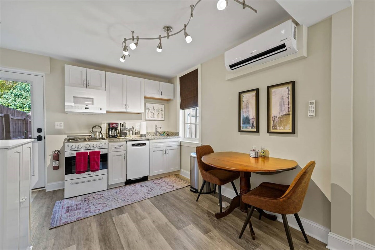 1 Bedroom • 1 Bathroom 1 Bath • Sleeps 2-4This is a two story carriage house, not an apartment. It makes for a very private furnished housing experience, whether short-term or extended stay. The layout is open and flexible. The private backyard patio is great for well-behaved pets. Built around 1860. Tons of historic character. Millers Court carriage house row is directly off of the 300 block of East Capitol Street, three blocks to the Capitol. Fantastic location. First floor is open kitchen, dining, and living room. Queen sleeper sofa in living room. Private backyard patio (completely fenced, so perfect for a dog). Upstairs is an open bedroom with queen bed, great workspace area with desk, and large closet. Nicely tiled bath with tub/shower. Parking MAY be available directly in front (inquire about availability). Very few of these remain in DC. Many were torn down decades ago.